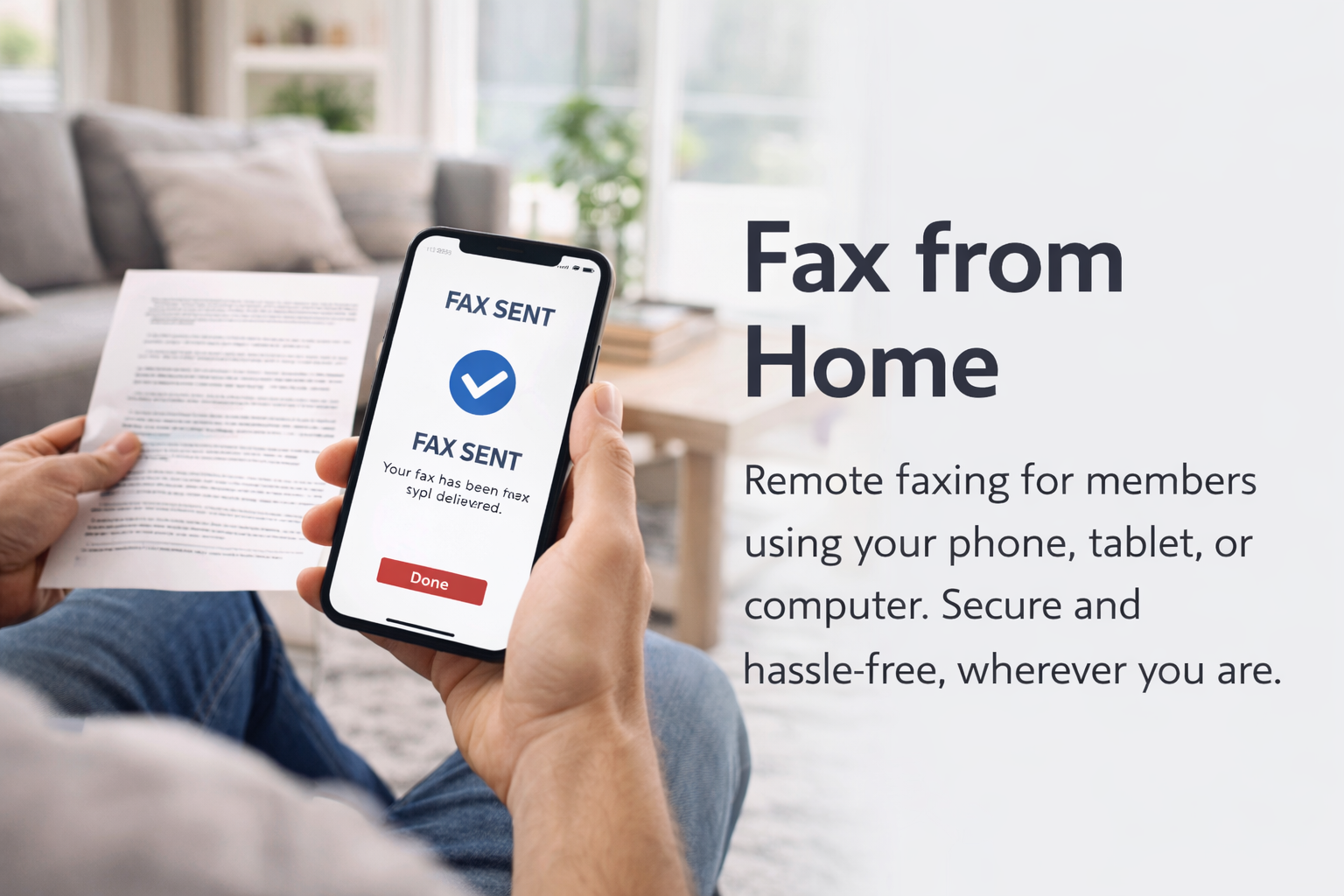 Whether you’re at home, in transit, or traveling, your fax goes through securely.